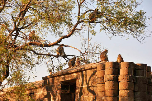 Aujourd'hui, ce fort vieux de 800 ans représente un véritable défi pour les touristes qui osent l'escalader. La vue depuis le sommet du fort de Daulatabad se mérite, car il faut gravir près de 700 marches. Le fort apparaît sur votre gauche, à peu près à mi-chemin entre Aurangabad et les grottes d'Ellora. Comme dans bien des lieux en Inde les singes peuplent les temples et chateaux. Le fort s'étendait sur une superficie d'environ 95 hacres, englobant une colline pyramidale de 200 mètres de haut .