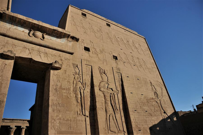 Situé à l'extrémité ouest de la petite ville d'Edfou, le temple d'Horus se dresse majestueusement sur une surface de 137 mètres sur 79. Entièrement fait de grès, il comporte un grand pylône, une grande cour, deux grandes salles hypostyles, un sanctuaire et de multiples chambres dévouées au culte d'Horus et d'Hathor.