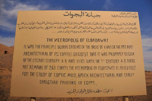 Le cimetière d'El Bagawat serait préhistorique et serait l'un des plus anciens cimetières chrétiens d'Égypte. Avant l'introduction du christianisme en Égypte, c'était un lieu de sépulture utilisé par les non-chrétiens, puis par les chrétiens. Les chapelles qui s'y trouvent appartiendraient aux deux époques. Des fresques coptes datant du IIIe au VIIe siècle ornent les murs. On compte 263 chapelles funéraires, dont la chapelle de l'Exode (première moitié du IVe siècle) et la chapelle de la Paix (Ve siècle) possèdent les fresques les mieux conservées.