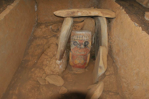 Ces statues, d'une taille impressionnante, sont souvent décorées de motifs géométriques et animaux, qui semblent symboliser des forces naturelles et spirituelles. Les visages sculptés dans la pierre affichent des expressions sérieuses et énigmatiques, renforçant le sentiment que ces sculptures ne sont pas de simples représentations artistiques, mais des entités vénérées.