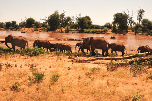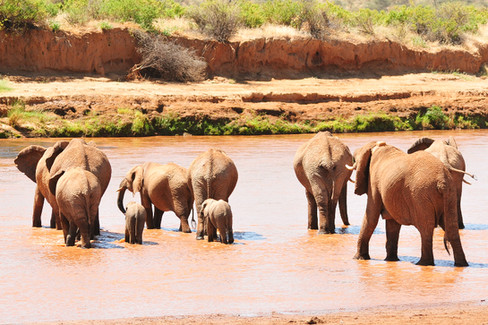 La réserve nationale de Samburu comprend deux montagnes, Koitogor et Ololokwe. La rivière Ewaso Ng'iro (qui signifie « eau brune ») traverse la réserve et un mélange d' acacias, de forêts riveraines, d'épineux et de prairies. L'Ewaso Ng'iro prend sa source dans les hautes terres kenyanes et se jette dans le marais de Lorian. La sérénité naturelle qui règne ici est due à l'éloignement des zones industrielles et à l'inaccessibilité de la réserve pendant de nombreuses années. Au levée nous débuterons avec le bain des éléphants qu'ils prennent chaques matin dans la rivière. Une joyeuse parade qu'ils semblent prendre plaisir à faire.