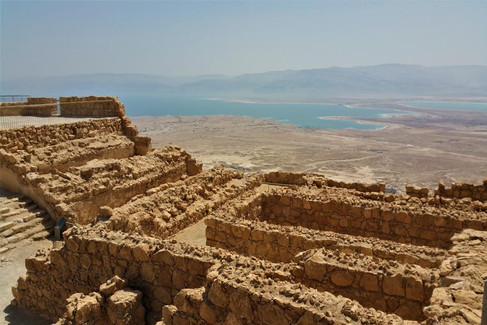 L'impressionnante forteresse de Massada a défié toutes les constructions de son époque et est devenue un lieu imprenable au milieu du désert de Judée. Quand on voit cet endroit on comprend comment les romains on dû avoir de la dificulté pour atteindre les zélotes en fuite après la destruction du Temple en l'an 70. Sur la route qui mène à la forteresse on peut voir la mer morte avec son oasis de Ein Guedi que l'on verra plus tard.